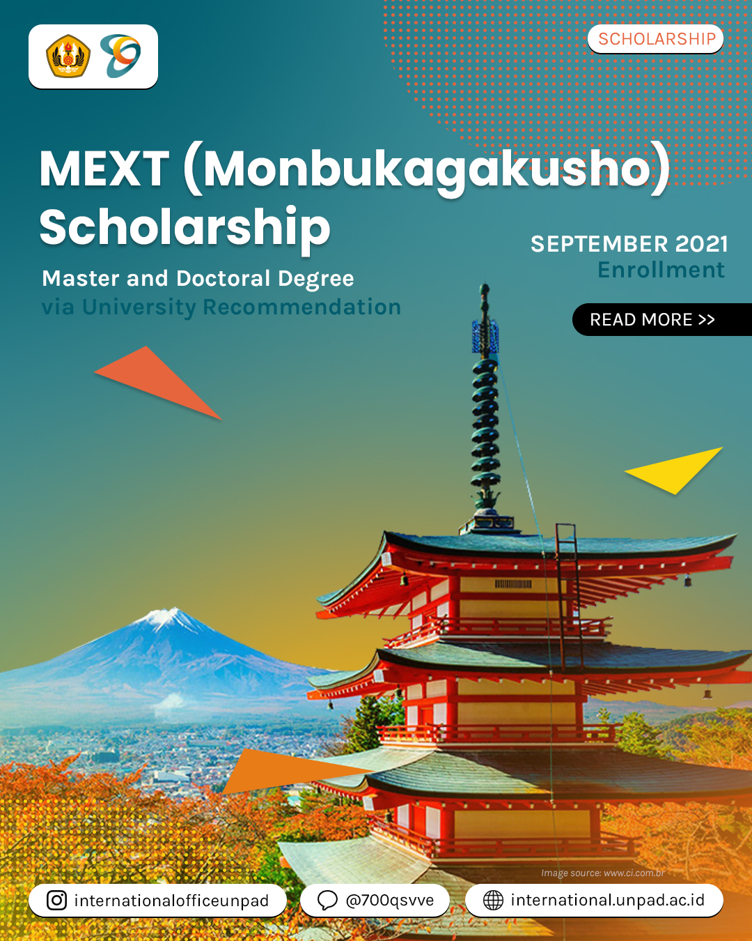 Opportunity Master And Doctoral Degree Mext Monbukagakusho Scholarship Via University Recommendation For September 2021 Enrollment International Office